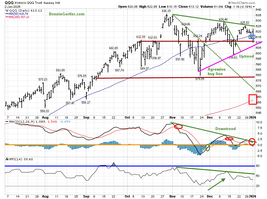 All major averages were lower last week on weakening market breadth as 2025 came to an end. New Lows on the New York Stock Exchange remain in a low-risk zone. Support levels remain intact on the major averages. Until support levels break and the New Lows on the NYSE expand over 150, higher prices are likely. Manage your risk, and your wealth will grow.