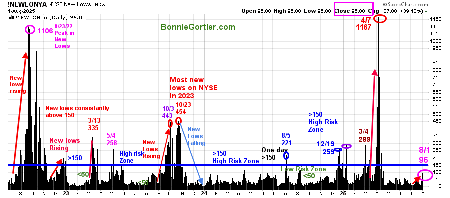 New Lows on the NYSE peaked at 1167 on 4/7/25, then contracted sharply as the market bottomed in April.