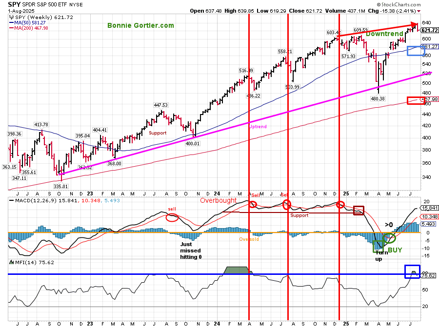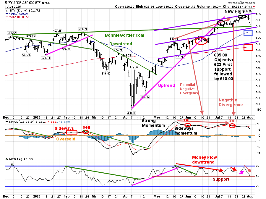 The upside objective of 635.00 for the SPY daily was hit on Friday, August 25.