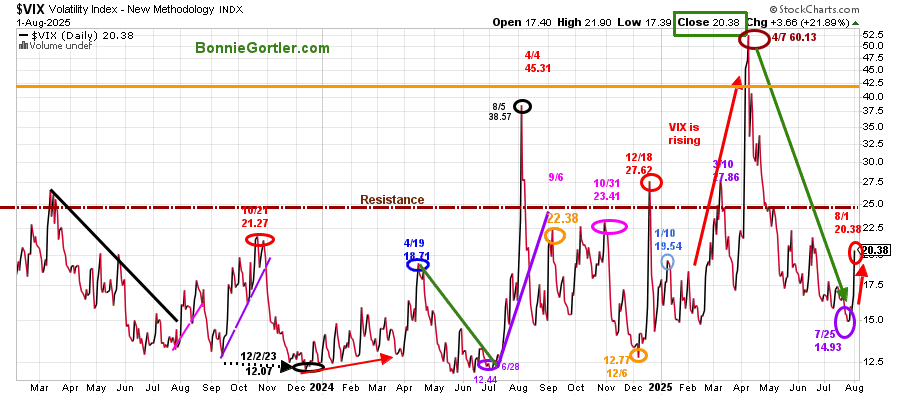 Above 25.00 would likely imply that VIX continues to rise if investors become cautious, selling stocks and taking profits. VIX could jump between 32 and 40 quickly if the bears take control.