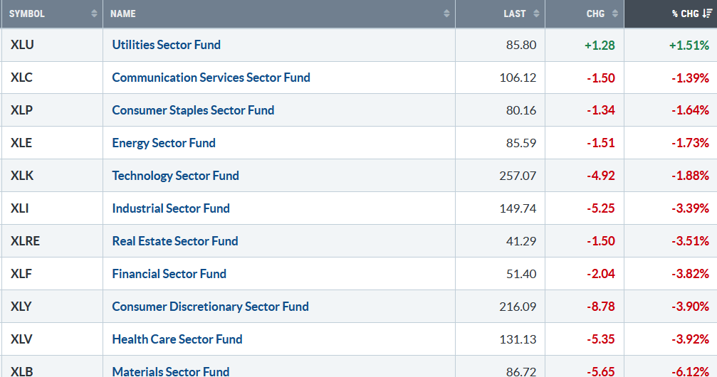 Volatility and selling returns to start August. Ten of the eleven S&P SPDR sectors were lower last week. Utilities was the strongest sector, while Health Care (XLV) and Materials (XLB) were the weakest sectors. The SPDR S&P 500 ETF Trust (SPY) fell -2.41%.