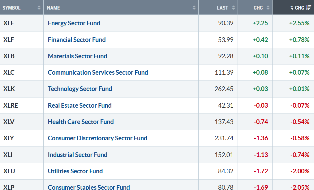 S&P SPDR Sector ETFs Performance Summary 9/05/25 – 09/12/25
