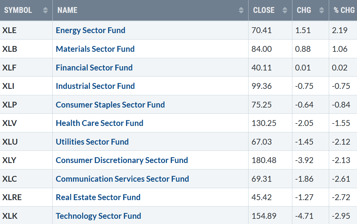 As the week progressed, stocks weakened. Three of the eleven sectors rose, while the SPDR S&P 500 ETF Trust (SPY) was down -1.84%. Energy (XLE) and Materials (XLB) were the strongest, while Real Estate (XLRE) and the Technology Sector (XLK) were the weakest.