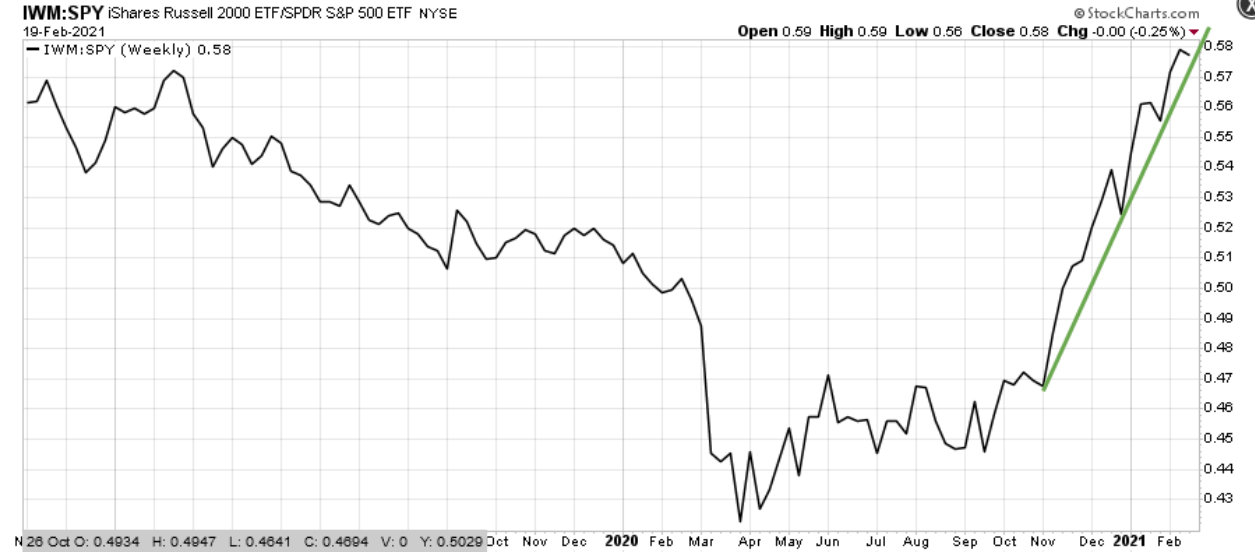 Figure 3: Weekly iShares Russell 2000 Index (IWM)/S&P 500 Index (SPY) Ratio